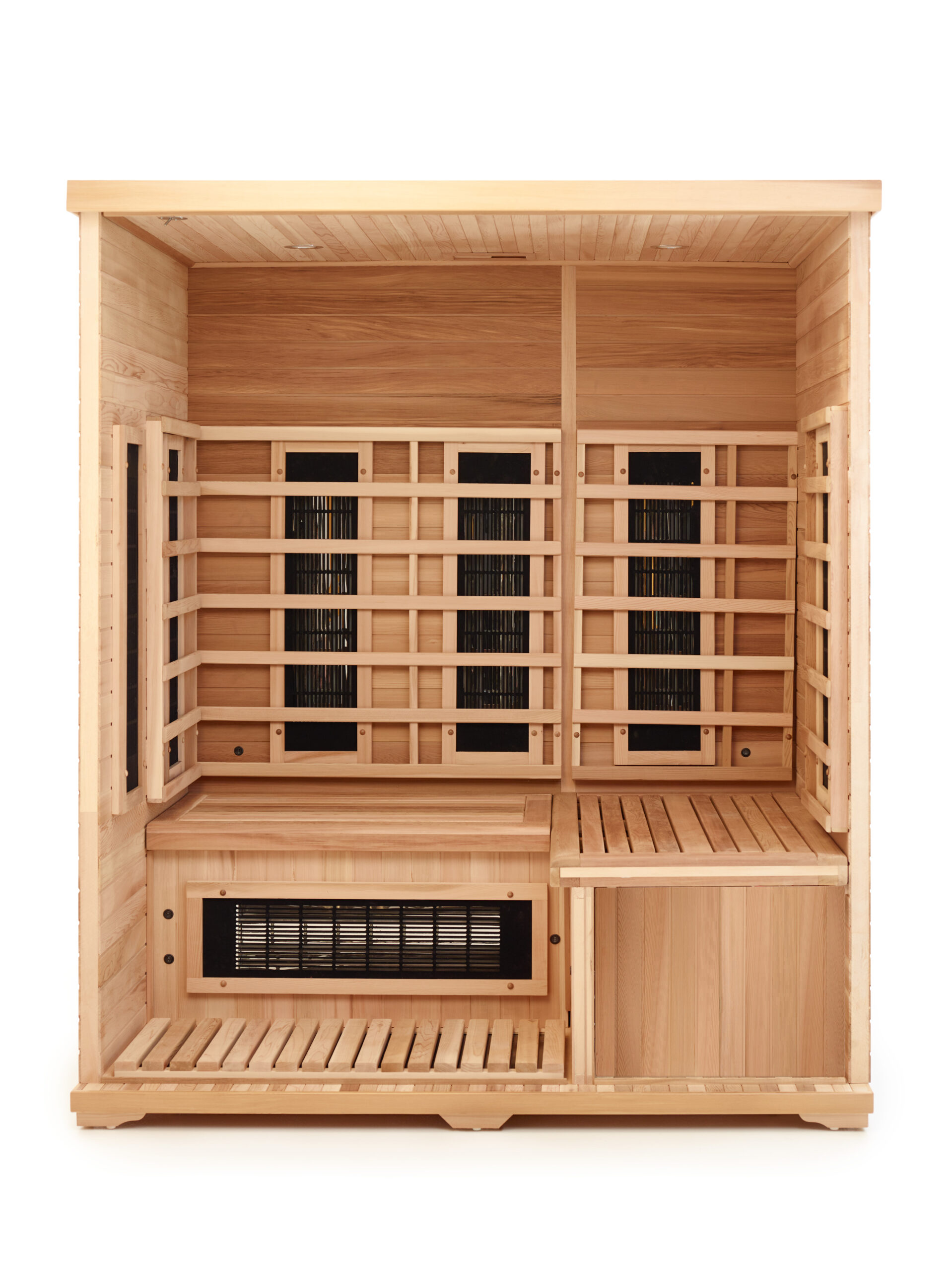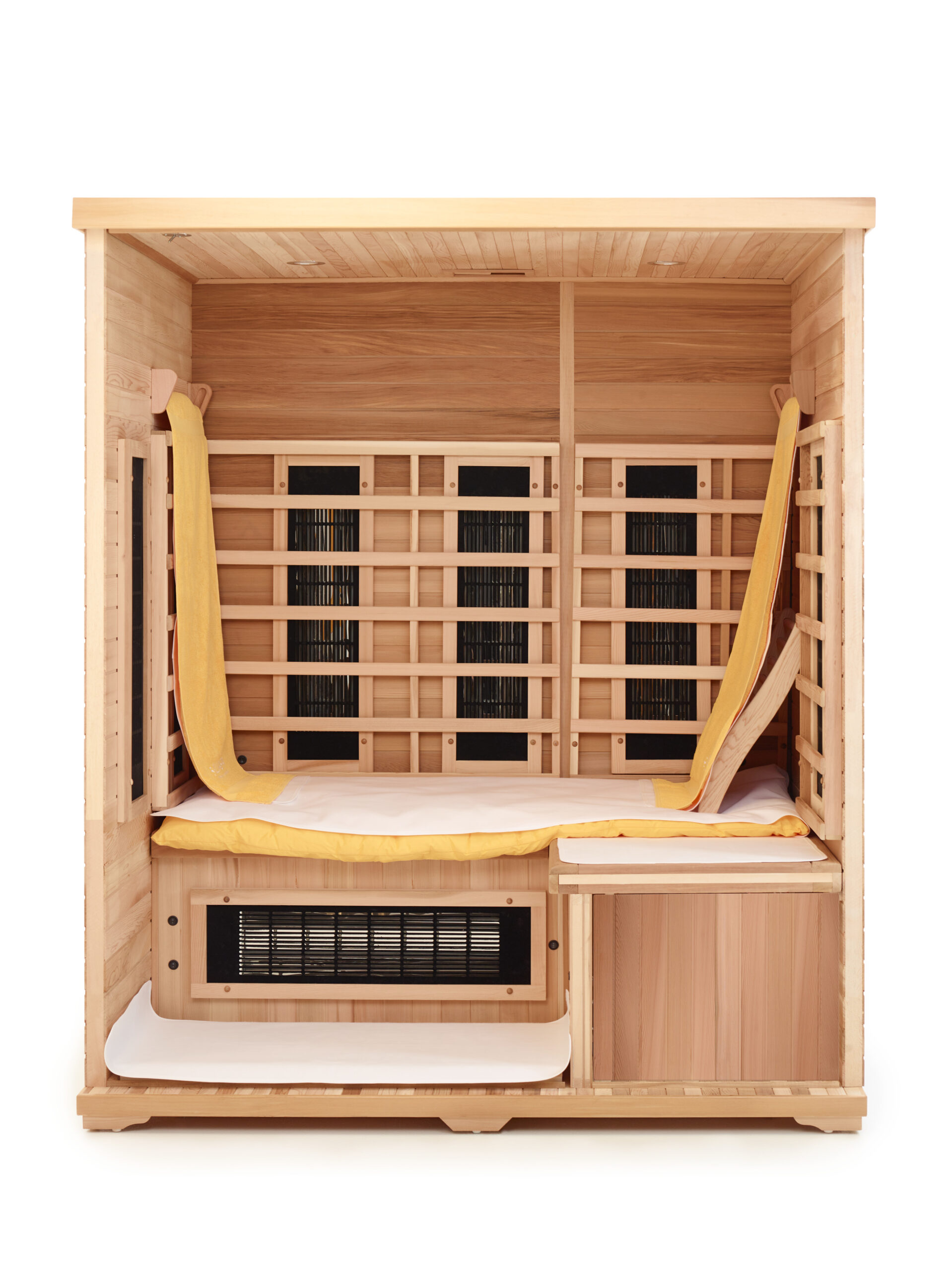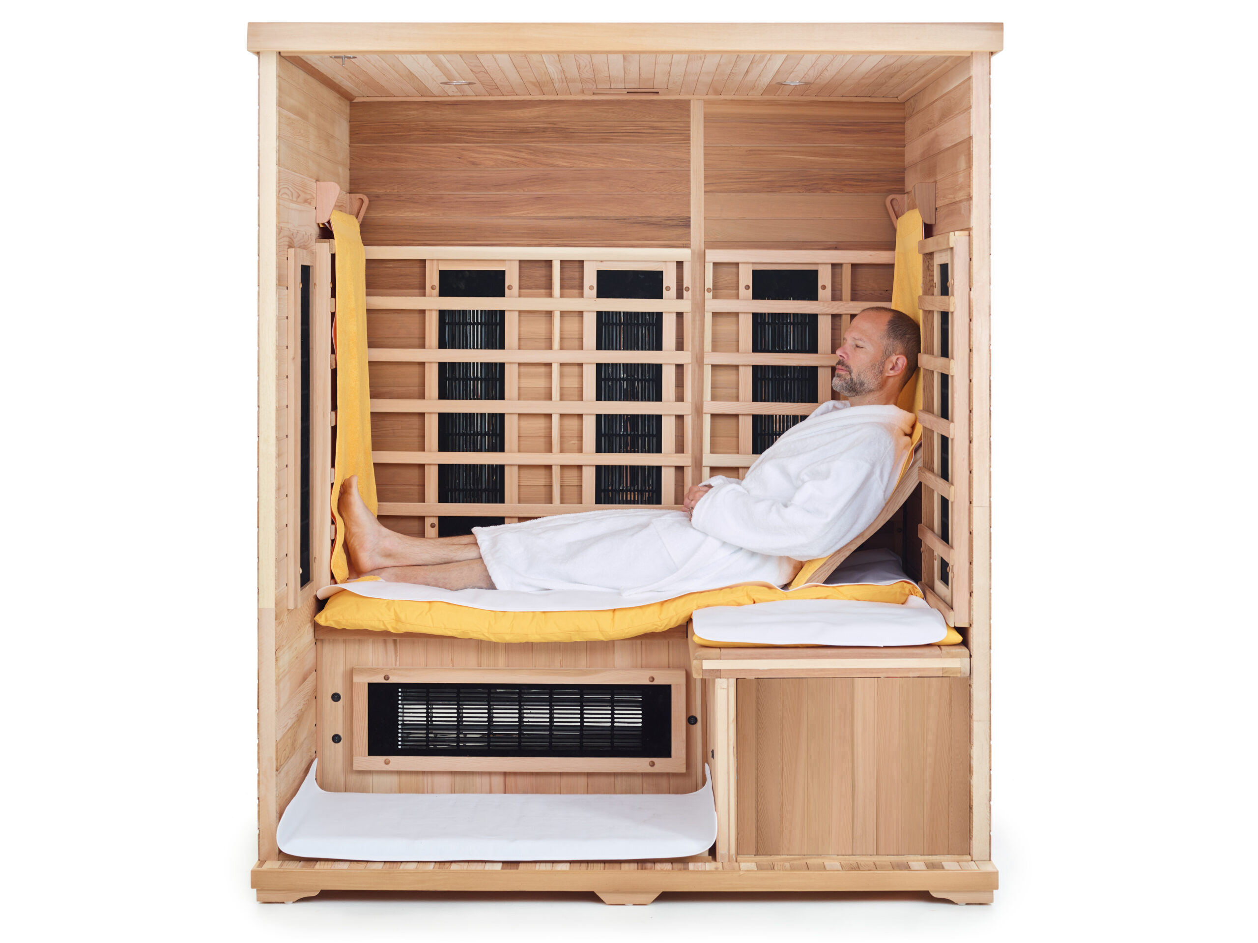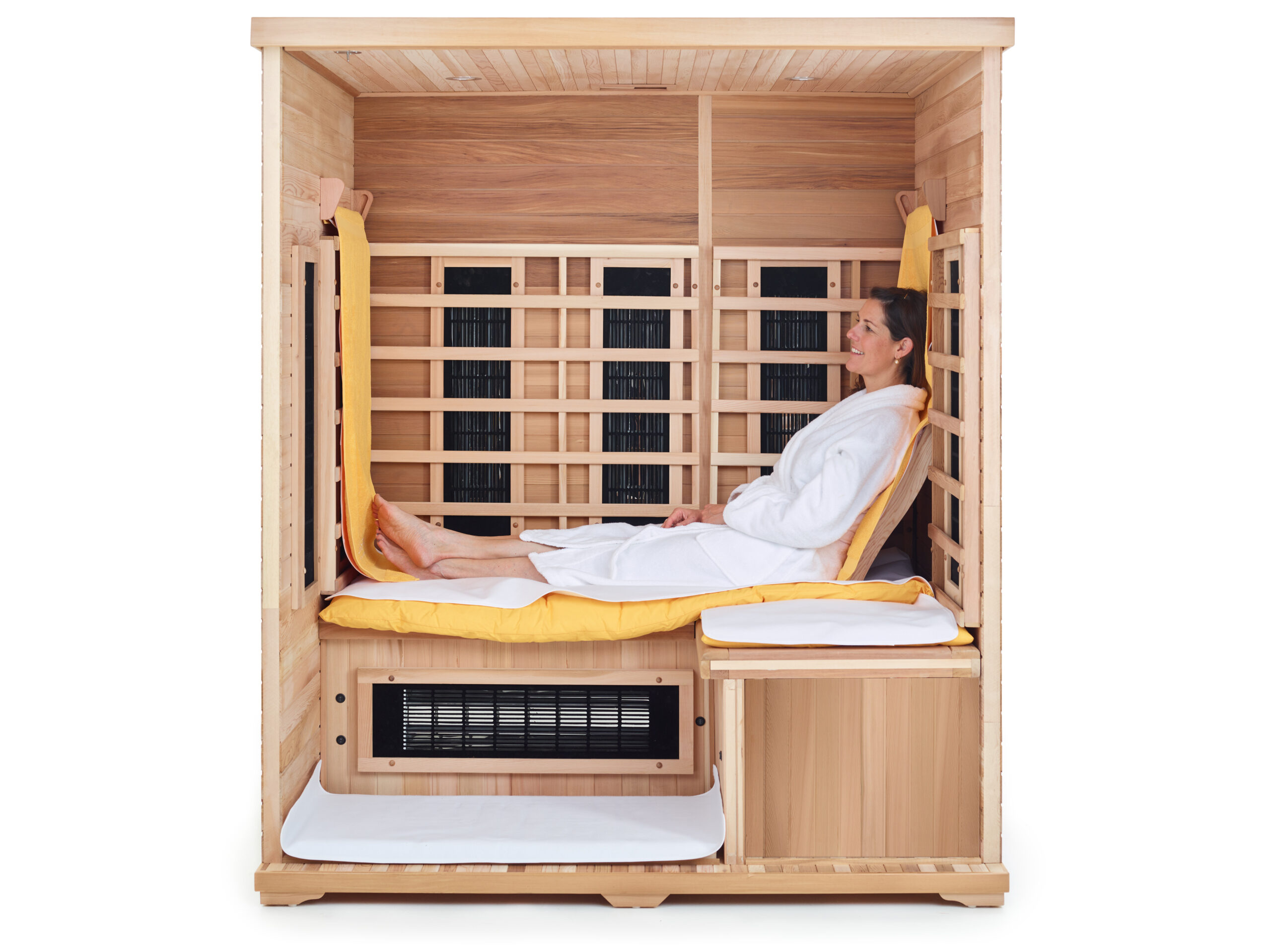Unsere AL 150 ermöglicht das komfortable Liegen und dies obwohl die Kabine nur 1,5 m2 Platz braucht. Neben der Liegefläche verfügt die AL 150 auch zusätzlich über einen Sitzplatz und ist somit die kleinste Infrarotkabine auf dem Schweizer Markt, in der zwei Personen komfortabel die Infrarotstrahlen geniessen können. Dank unserem System der Ganzkörpererwärmung können Sie wahlweise sitzen oder liegen, Ihr Körper erfährt immer eine Wirkung von 100 %. Den Unterschied zwischen dem Sitzen und Liegen erfahren Sie idealerweise in einer Probesitzung in unserer Ausstellung