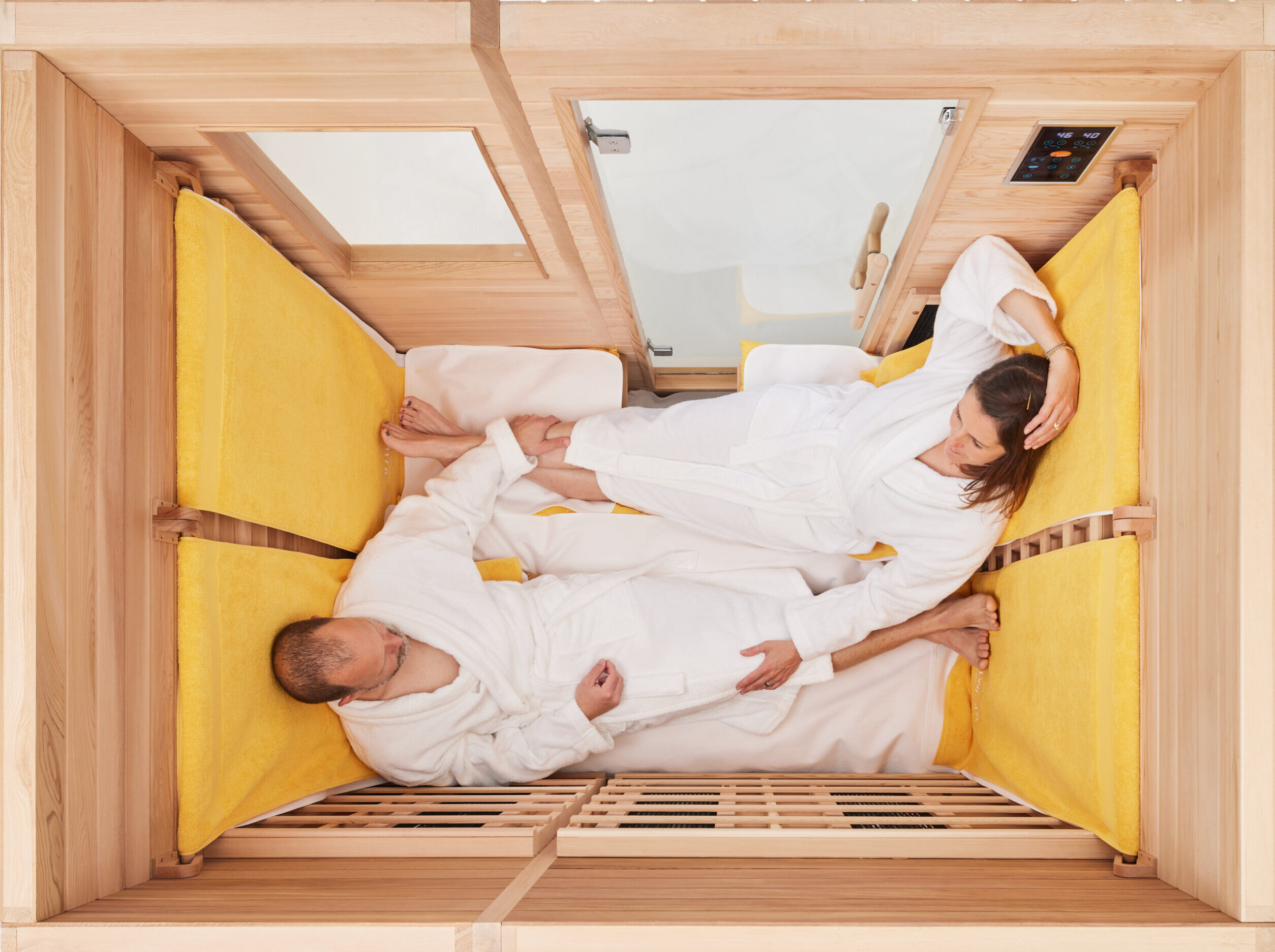 An der OLMA wählte das Ehepaar Köppel unsere AL 150, da diese Kabine auf 1.5 m2 das komfortable Liegen ermöglicht und doch klein genug war, um sich wunderbar in den Wellnessbereich des Kunden einzufügen. Auf dem Bild wird…